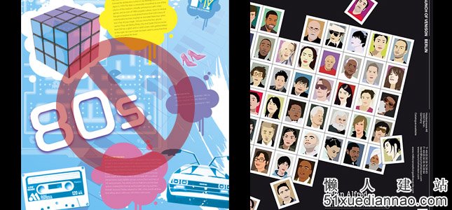 近几年一直在兴起一股混合艺术还有自由插画的风气,首先我们不讲这是国际设计圈玩剩下的东西,我们单就画面表现来看,这种风格绝对不是下载一堆AI或者PSD源文件,稍微ctrl+u一下就可以拼凑出来的,乱七八糟的应接不暇和丰富多彩的视觉拼盘,你能察觉到有一点不同吧?