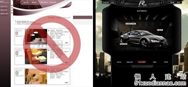 当年国内WEB设计圈对韩国模板的崇拜风潮,正是这种俗气的集大成之作。这个问题的根源在于对“流行”的盲目跟从,在没有人愿意思考的时候,往往某种错误的思考就容易形成风气,比如“群众的眼睛是雪亮的”这种低智商的说法,在设计圈就没有依据,群众雪亮的前提是,有部分先雪亮起来,并且先雪亮的人有足够的话语权和领导力。
